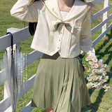 無邪気な日々を象徴する青春の象徴。規律と個性の狭間にある矛盾や葛藤を内包したセーラーブラウスとプリーツスカート。襟の縁にはレース刺繍が装飾されています。思春期の鎧に身を纏って、大人への門出を控えた儚げな美しさを解き放ってみて。