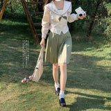- プリーツスカート - ライトグリーン×アイボリー(ショート丈)