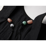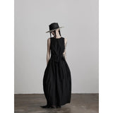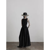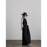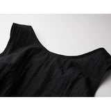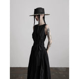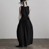 素朴さと洗練が同居する、ウエストリボン付きのノースリーブワンピース。背中部分を大胆に魅せたデザインで、ざっくりとしたシワ感とナチュラルなAラインシルエットが特徴的。シンプルながらも深みのあるスタイルを演出してくれる。