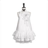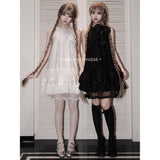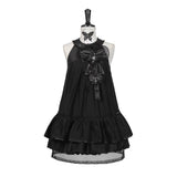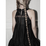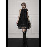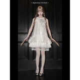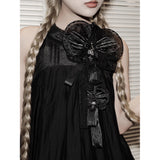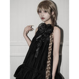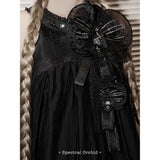 暗黒の中に咲く幽玄な蘭の花のように、ミステリアスな雰囲気が漂うワンピース。柔らかな光沢を纏った生地が、動くたびに繊細な陰影を生み出します。胸元には大ぶりのオーキッドモチーフが咲き誇り、花弁のようなレイヤーが上品な立体感を演出します。ふんわりと広がる二段のフリルヘムは軽やかで、レースの縁取りが甘やかな余韻を添える仕立てとなっています。