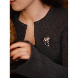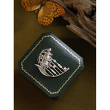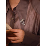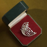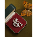 夢の調べを奏でる鈴蘭の竪琴ブローチ。月夜に響く音色をそっと胸元に宿したような、静謐で幻想的な佇まい。銀色に輝く鈴蘭の花が竪琴の弦に優雅に咲き誇るようなデザインで、繊細で詩的な美しさを湛えています。