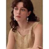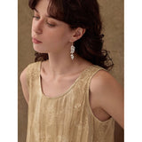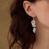細やかな透かし細工の葉の下に、鈴のような小花がいくつも連なる鈴蘭のピアス。風に揺れるたび、耳元で静かに鳴るかのような鈴蘭のシルエットが、凛とした品格を添えます。詩的な存在感を放つアイテム。
