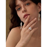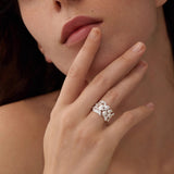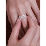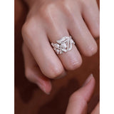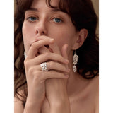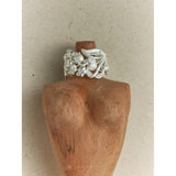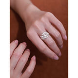 まるで森の奥でひっそりと咲く鈴蘭を束ねたような指輪。繊細な透かし細工の葉と、小さく揺れる花のモチーフが重なり合い、指元にそっと季節の息吹を添えます。静かで優しい輝きが、見る人の心を穏やかに包み込む一輪の詩。