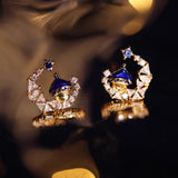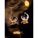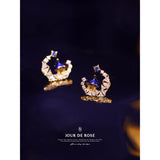 星降る夜に奏でる、夢と魔法の三日月の耳飾り。深い群青の幻想的なお城と、煌めくビジューが、まるで幻想劇場の一幕のように、耳元に物語を宿します。童話の世界観を纏ったアイテム。