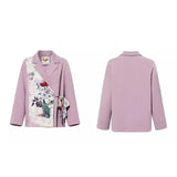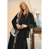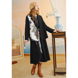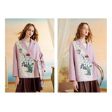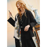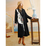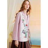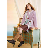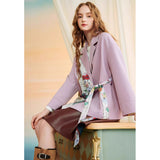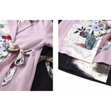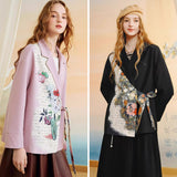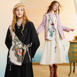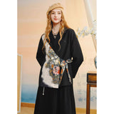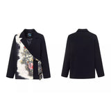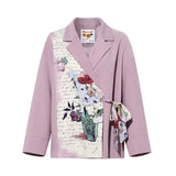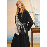 ゴッホが描いた『花瓶の花束』と『静物:バラとアネモネのある日本の花瓶』にオマージュを捧げるジャケット。クラシカルなテーラードジャケットのシルエットをベースにしつつ、アシンメトリーに配された絵画が描かれた生地を前身頃に重ね、リボンで結ぶようにデザインされています。帯のように巻き付けるデザインが和洋折衷的な趣を添え、クラシックとモダンが融合した独創的なアイテム。