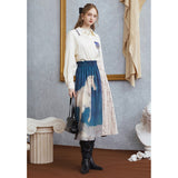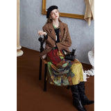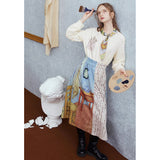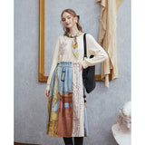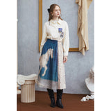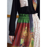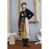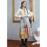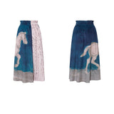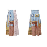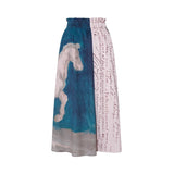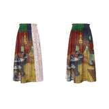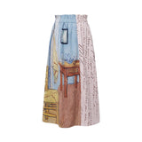 ゴッホが描いた『夜のカフェ』と『馬の石膏像』と『アルルの寝室』にオマージュを捧げるスカート。キャンバスに描かれたような鮮やかな絵画と『テオへの手紙』が組み合わされ、ファッションと美術館の境界を曖昧にするようなデザイン。シルエットはクラシカルなAラインで、ウエスト部分のギャザーが柔らかな動きを与えています。アート性と日常性が融合した、まるで「歩く美術館」のような存在感を放つスカート。