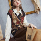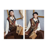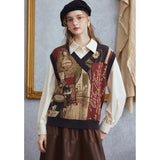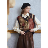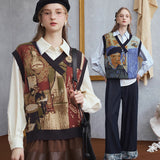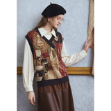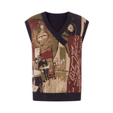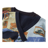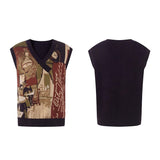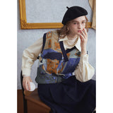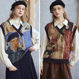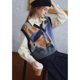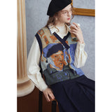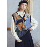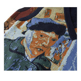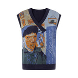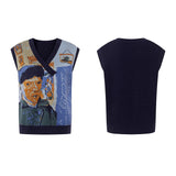 ゴッホが描いた『夜のカフェ』と『自画像』にオマージュを捧げるニットベスト。まるで絵画をそのまま編み込んだようなアート性の高いアイテム。深みのある色合いで構成された柄は、絵画の筆致や陰影をそのまま再現しており、まるで美術館から抜け出したキャンバスを身にまとうような印象を与えます。クラシカルなニットベストの形に、独特の図像と文字を組み合わせることで、ヴィンテージ感と知的な雰囲気を漂わせるデザインに仕上がっています。
