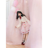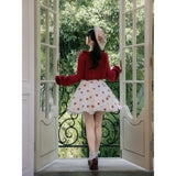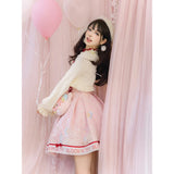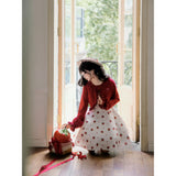 物語の一場面に溶け込むような、詩的な存在感を湛えたカーディガン。甘やかでありながらどこか懐かしさを帯びた、少女の記憶をそっと包み込むような一枚。身頃はすっきりとした短めの丈感に仕立てられ、ウエスト位置を軽やかに引き上げながら、内に着たワンピースの愛らしさを自然に引き立てています。縁取りには控えめなフリルが施され、直線的になりがちなシルエットにやわらかなリズムを与えています。