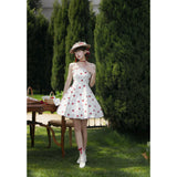 いちご畑のピクニックへ。甘酸っぱい可愛さに溢れるストラップワンピース。オフホワイト地に散りばめられた真っ赤ないちご柄がとってもキュート。見ているだけで気分がときめく、甘酸っぱい世界観。細めのストラップと、胸元にあしらわれたさりげないフリルがガーリーな印象。すっきりとした胸元に、自然に広がるフレアシルエットが夏の爽やかさを引き立てます。
