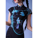 雅やかで幻想的な世界を纏ったチャイナワンピース。描かれているのは、古画の中の仕女たちが春の朝に舞い降りた様子。光の角度によって浮かび上がる繊細な暗紋と螺鈿屏の絵画が、伝統とモダンを静かに織り交ぜます。静けさと華やかさを併せ持つ、時を超えた美しさを貴女へ。