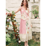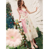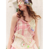 ゴッホが描いた『向日葵』にオマージュを捧げるキャミソールワンピース。手描きでスケッチされた美しい花々や、ロマンティックなピンクのチェック柄。胸元とウエストには軽やかなフリルがあしらわれ、裾は透け感のあるティアードフリルが施され、軽やかに揺れるシルエットとなっています。幻想的なムードが漂い、絵本の中のヒロインを思わせます。