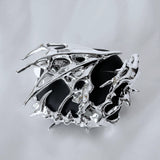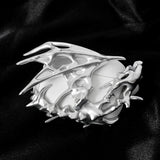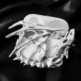 脊椎や肋骨が絡み合うように流線的に隆起した、龍の骨を思わせるAirPodsケース。鋭さと静謐さを併せ持つ造形のケースで、磨き上げられた冷たい光沢は生き物の名残のような緊張感を宿しています。空洞や隙間が生む影が骨格の奥行きを強調し、装飾というより遺骸を纏う彫刻のような存在感を放っています。