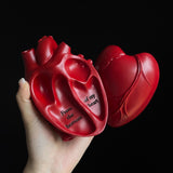 掌に収まる心臓のかたちを忠実に写し取ったアクセサリーケース。外側には静かに脈打つような血管をまとい、内側には左右に分かれた空洞があり、”from the bottom of my heart"という言葉が刻み込まれています。少し危うく、それでいて強い執着と愛情を閉じ込めた、象徴的で官能的な佇まいを湛えています。