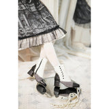 アンティーク調の世界観に映えるヴィクトリアンボタンブーツ。白と黒、そして淡いグレーが静かに溶け合ったこの靴は、丸みを帯びたトゥが印象的。側面に並ぶ丸い装飾ボタンがレトロな上品さを与えます。優雅で物語めいた佇まいを醸し出しています。