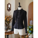 英国のお嬢様のハイネックフリルブラウス(ブラック)