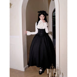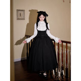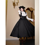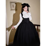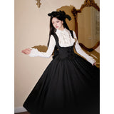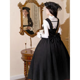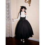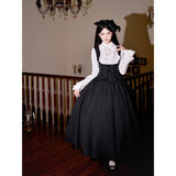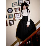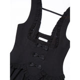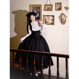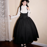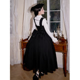 真夜中の古城で、誰かがそっと囁いている。ウエスト部分にリボンを装飾した編み上げジャンパースカート。膨らみのあるボリュームたっぷりのスカート部分が優雅な雰囲気を醸し出しています。