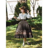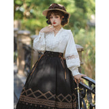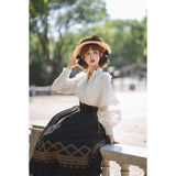 ふんわりとした白布に繊細なレースを重ね、ヴィクトリアンの気品とロマンをそのまま閉じ込めたような、甘美で優雅なレースブラウス。首元には立ち上がるようにあしらわれたフリルが影を落とし、胸元には幾重にも重なるレースが柔らかな曲線を描き、袖には透け感のあるレースパネルと膨らみのあるスリーブがクラシカルな存在感を添えています。アンティークの物語世界から抜け出してきたような、優雅で物語性あふれるブラウス。