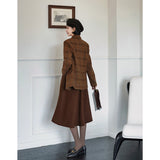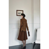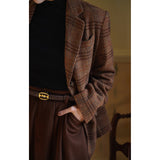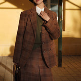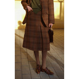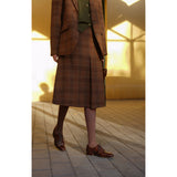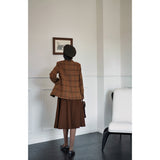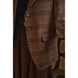 ブリティッシュレトロな雰囲気たっぷりのタータンチェック柄のウールジャケットとウールスカート。厚みのあるしっかりとした生地感のアイテム。古き良き時代のエレガントな映画女優みたいな雰囲気に。
