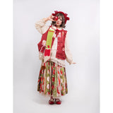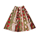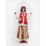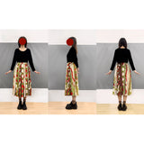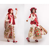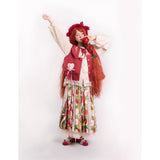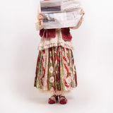深みのある苔色と熟れた林檎の赤が織りなす、幻想的な物語を描いたベロアスカート。柔らかく光を受けて艶めくベロア生地には、月の満ち欠けと林檎が連なるように配置され、まるで季節と時間が溶け込んだ詩のよう。ゴールドの装飾やリボンのモチーフが細やかに散りばめられ、どこかアンティークな温かみを感じさせます。