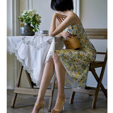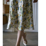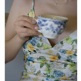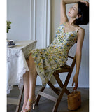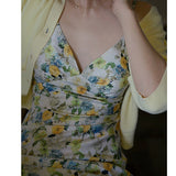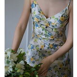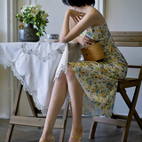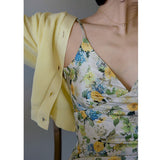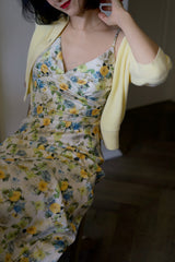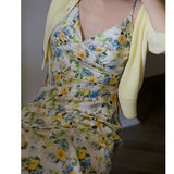 水彩絵画の花柄キャミソールワンピース