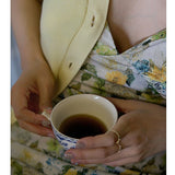 水彩絵画で描いたような花柄のキャミソールワンピース。ほんのりと輝くサテンの生地が上品。お気に入りのカーディガンを羽織れば、ロマンティックで可憐な女の子の完成。澄んだ美しさを静かにたたえるフェミニンなアイテムです。
