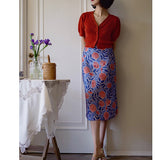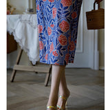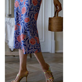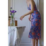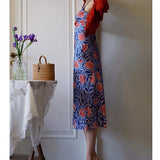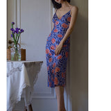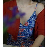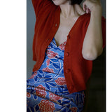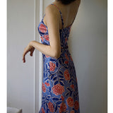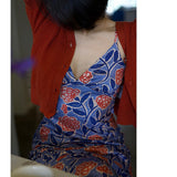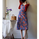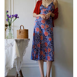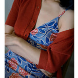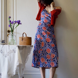 青い青空に真っ赤な花が咲き誇ったような花柄キャミソールワンピース。ほんのりと輝くサテンの生地が上品。お気に入りのカーディガンを羽織れば、ロマンティックで可憐な女の子の完成。澄んだ美しさを静かにたたえるフェミニンなアイテムです。